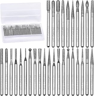 Diamant Schleifstifte Diamantfräser Diamantbeschichtete Bohrer Set, 30Pcs Rotary Burs Raspel Set Fräser Set mit 3mm Schaft Rotationswerkzeuge Zubehör für Glas Edelstein Metall Dremel Schleifen