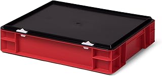 Euro-Transport-Stapelbox/Lagerbehälter, rot, mit schwarzem Verschlußdeckel, 400x300x86 mm (LxBxH), Wände u. Boden geschlossen, aus PPN