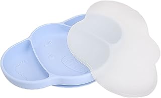 Silikon Saugnapf Teller für Kleinkinder mit Snap Tight Cover, Baby Elefant Kleinkind Tisch-Sets geteilten Teller - Kaltes Blau