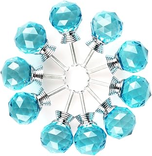 sourcing map 10Pcs 30mm Kristall für Glas Schublade Knopf Schrank Ziehgriff runde Form himmelblau