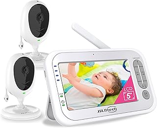 JSLBtech Video Babyphone mit 2 kameras 5" LCD Bildschirm Temperaturüberwachung Nachtsicht Hineinzoomen Gegensprechfunktion Energiesparmodus Schlaflieder Unterstützt Multi-Kamera (Bis zu 4 Kameras)