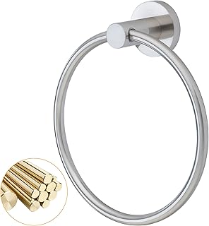 QogriSun Messing Handtuchring Handtuchhalter für Badezimmer Küche, moderner, runder Handtuchhalter, Wandhalterung, robustes Badezimmer-Zubehör, gebürstetes Nickel, 1 Stück