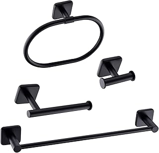 HANEBATH 4-teiliges Badezimmer-Zubehör-Set komplett, mattschwarz, Wandhalterung Handtuchhalter, Handtuchring, Toilettenpapierrollenhalter, Bademantelhaken