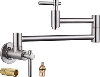 iVIGA Wasserhahn, Wandhalterung, Messing, Küchenspüle, klappbar, dehnbar, mit Doppelgelenk, Schwenkarm, Einzelloch, 2 Griffe für Küche, Restaurant, kommerzielle NPT
