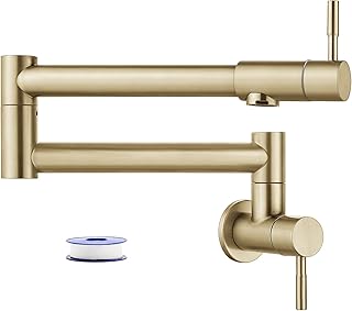Heyalan Gebürsteter Gold-Topffüller Wasserhahn faltbar dehnbar Wandmontage Küche Restaurant Spüle Wasserhahn SUS304 Edelstahl mit Doppelgelenk Schwenkarm Einzelloch Zwei Griffe kommerzielle NPT