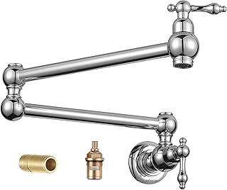 WOWOW Topffüllarmatur Chrom kommerzielle Wasserhahn klappbar Küche Wasserhahn Bleifrei Wandmontage Restaurant Wasserhahn Messing 2 Griffe Doppelgelenk Schwingarm Küche Wasserhahn